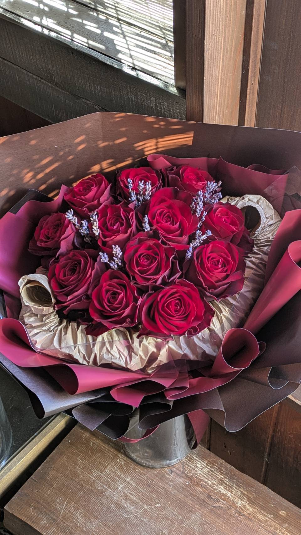 今回は、ダズンローズ赤バラ12本に、