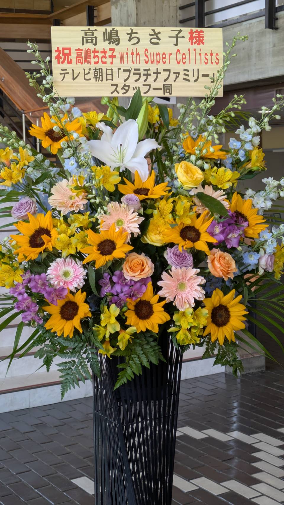 コンサート「高嶋ちさ子 with Super Cellists」様の御祝スタンドフラワー|愛媛松山